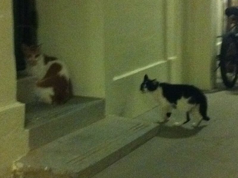 He was found on the 5th floor at someone else’s doorstep with Blackie, the neighborhood police cat, eyeing him like a meat.