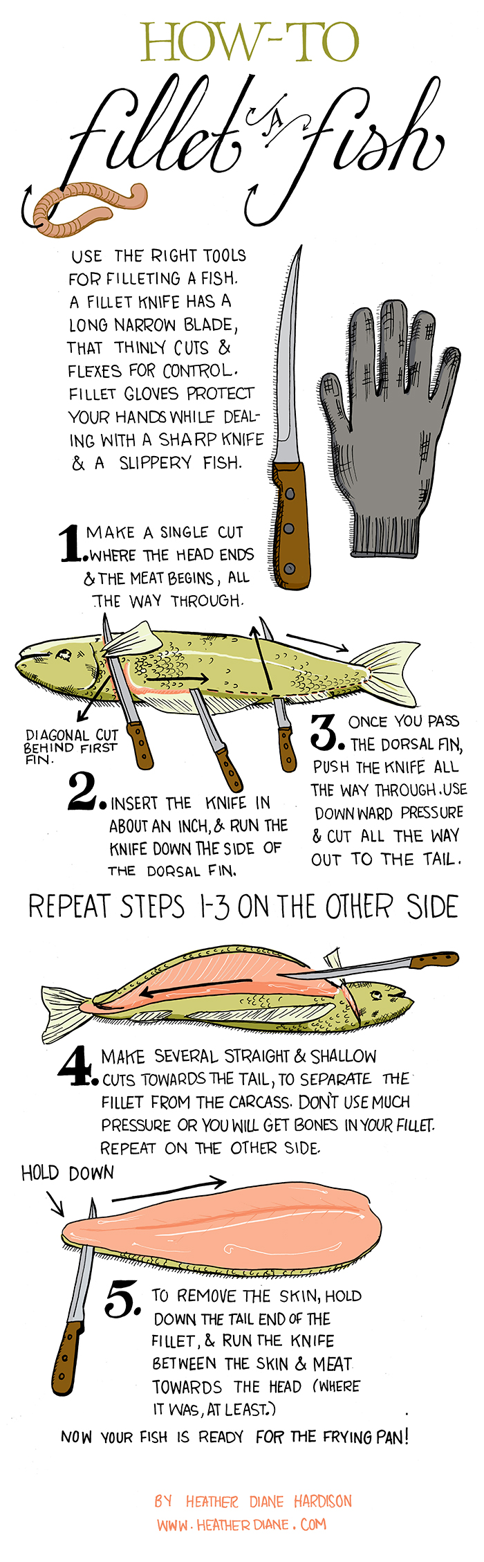 I’ve always thought cutting up a fish is so difficult and mind boggling. But this lady has illustrated it in the most convenient, easiest and motivational way that I might actually go buy a fish now and try it myself! =)