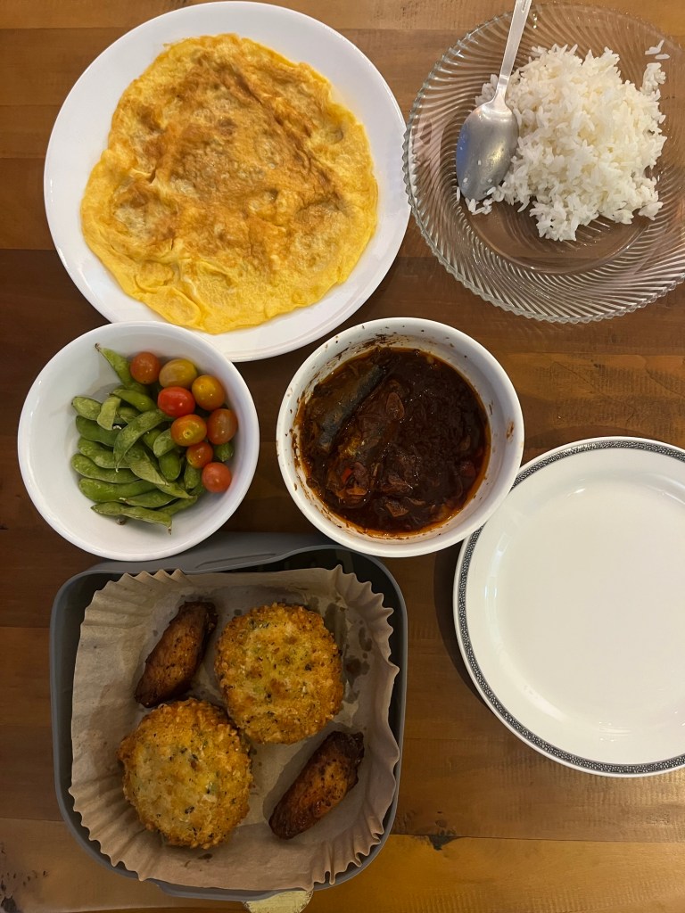 I love the sardine dish. It’s the can sardine in tomato sauce which I cooked with onion, garlic and chili padi first with a few spoonfuls of salty soy sauce over it.