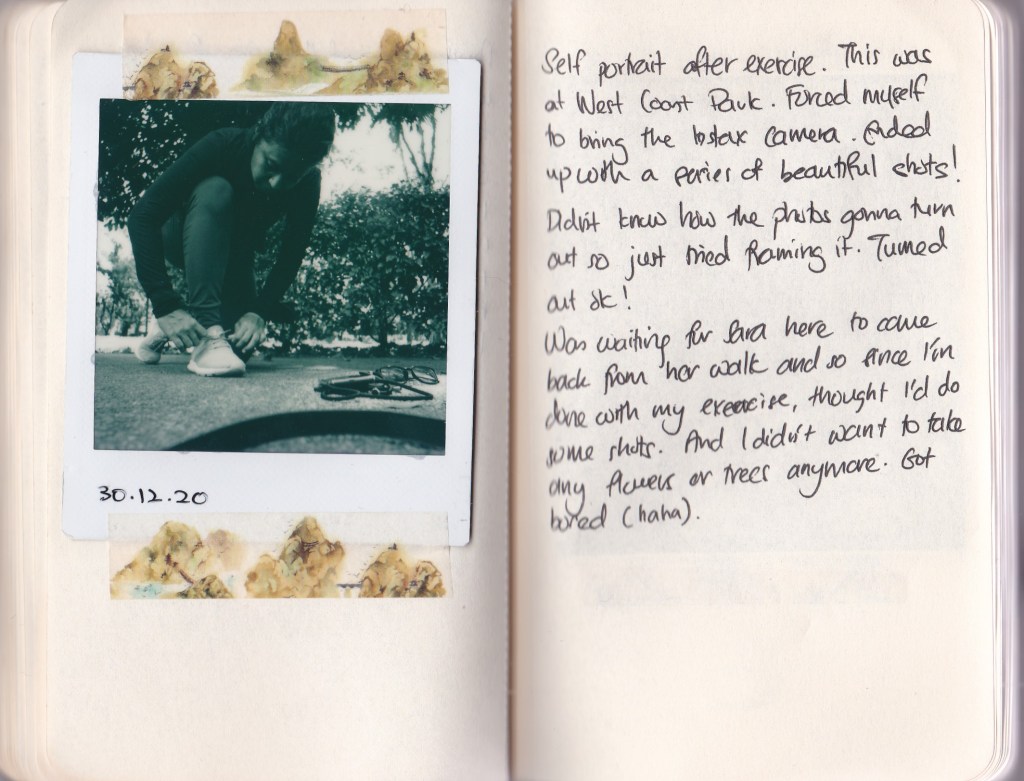 Self portrait after exercise. This was at West Coast Park. Forced myself to bring the instax camera. Ended up with a series of beautiful shots! Didn’t know how the photos gonna turn out so just tried framing it. Turned out ok!